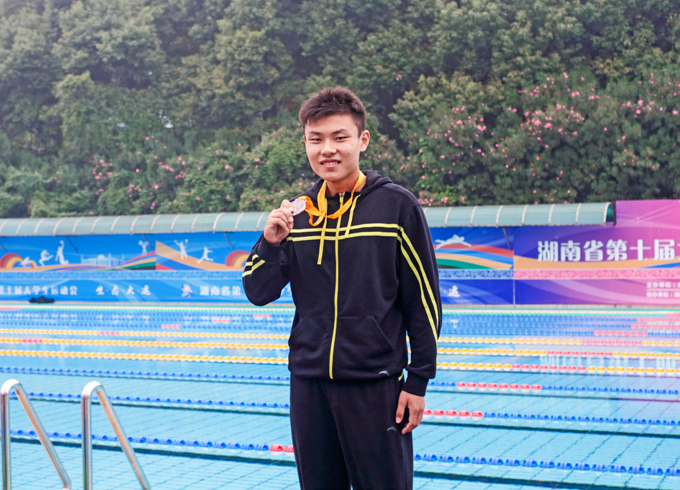 我校学生郭浩宇在男子400米自由泳比赛中摘得铜牌