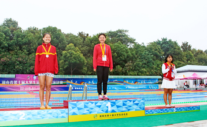 9月10日至16日,由省教育厅主办的湖南省第十届大学生运动会游泳比赛在长沙民政职业技术学院举行。我校派出了以副院长屈林岩为团长,邓晖为领队,谭祝平、张海峰为教练以及14名学生组成的代表团参赛。