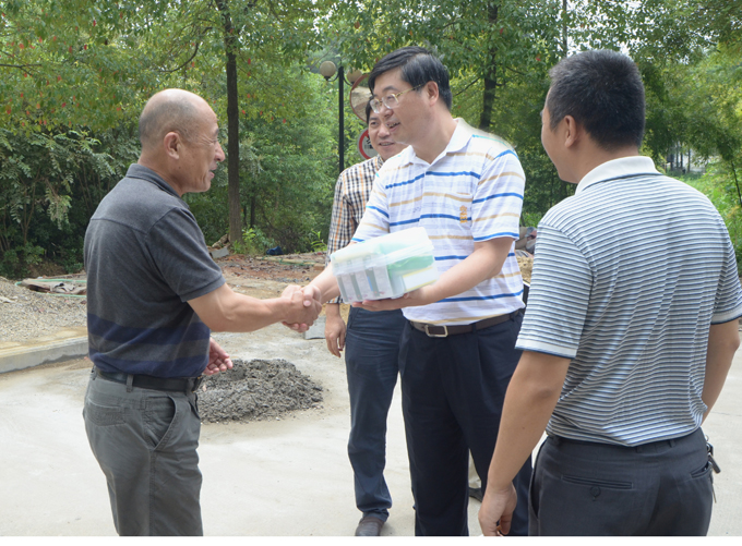 党委副书记、院长韦成龙向辛勤工作的劳动者送去防暑物品