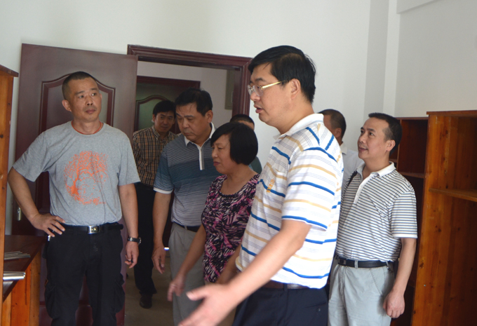 党委副书记、院长韦成龙,副院长陈大川一行查看新建学生宿舍桌椅安装情况