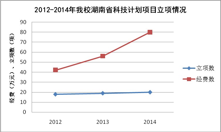 根据湖南省财政厅、湖南省科学技术厅联合发布的湘财企指[2014]2、3、4、6、7号文件,我校2014年度获湖南省科技厅科技计划项目立项20项,在工业支撑、应用基础、社会发展支撑、软科学研究、国际与区域科技合作等领域都有立项,获得资助经费共计80万元,呈现立项数量持续稳定增长、立项类别更为拓广、资助经费较大突破的良好态势。