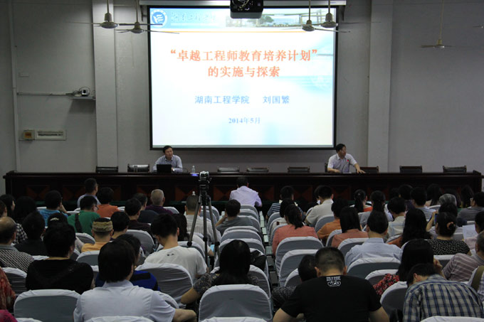 5月27日下午,湖南工程学院校长刘国繁教授在致远楼学术报告厅作了题为"卓越工程师教育培养计划的实施与探索"的讲座。院长韦成龙,副院长屈林岩及教务处、评估办、高等教育研究所、各系部(院)负责人、各教研室、实验室主任、各级本科教学工程项目负责人参加讲座。讲座由韦成龙院长主持。