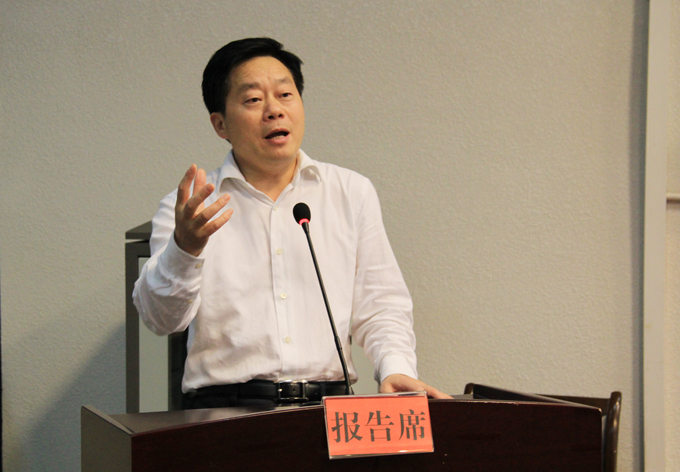 长沙市委组织部副部长、市人力资源和社会保障局党委书记、局长文丽霞作《积极作为 推动大学生尽快实现高素质就业》的报告
