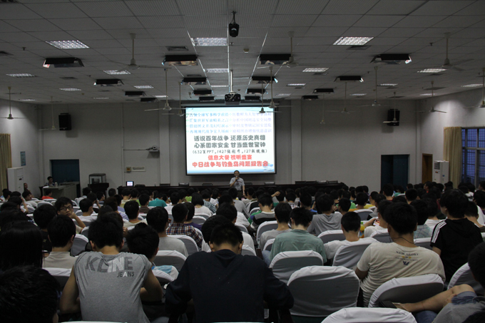 5月13日,教务处主办的人文素质教育系列讲座之中日战争与钓鱼岛问题在致远楼学术报告厅开讲。长沙市政协文教卫体和文史委员会主任、湖南省心理咨询师协会副理事长、浙江大学讲座教授、中南大学兼职教授陈忞主讲。机电系全体同学到场听取讲座,机电系相关负责人及心理健康教育中心老师参加了讲座。