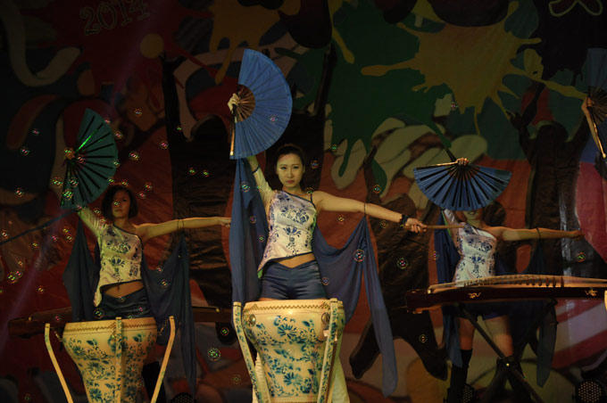 晚会在精湛的鼓乐表演《青花瓷》中拉开帷幕,精美的青花大鼓、悠扬的扬琴古筝、唯美的扇子舞蹈,使晚会在一开场就牢牢抓住了观众的眼球。伴随着热烈的掌声,各节目轮番登场,彰显着各自魅力,有动感十足,朝气蓬勃的舞蹈《Friday Night》、《要疯了》;有温文优雅,婀娜多姿的表演《oh my god》和《山楂树之恋》;有诙谐幽默,妙趣横生的谐趣舞蹈《四小天鹅》、小品《新三顾茅庐》;还有超级震撼的摇滚乐队现场演唱《野百合也有春天》、《自由》、《花房姑娘》……。