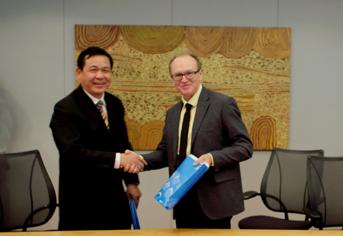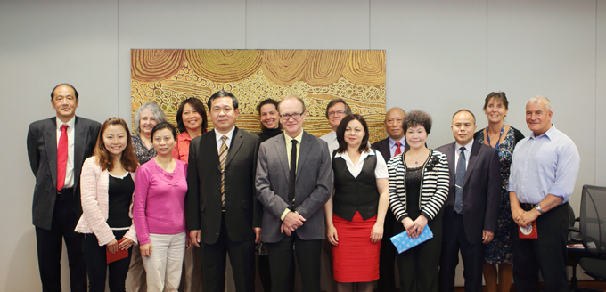 12月5日,陈大川副院长一行来到了澳大利亚堪培拉大学。在堪培拉大学中方代表的陪同下,代表团成员参观了堪培拉大学校园并看望了交流生代表,对堪培拉大学优美的校园环境、先进的教学设施、人性化的学生管理理念以及现代化的后勤服务系统留下了深刻印象。参观结束后,堪培拉大学校长Stephen Parker,国际工程学院副院长Monique Skidmore,英语学院首席代表John Peak,国际处亚洲主管Catherine Chi,校园执行总监Glenys Londom等热情接待了陈大川副院长一行,双方就开展校际交流与合作、进行联合办学等事宜进行了深入探讨并达成共识,随后,陈大川副院长与堪培拉大学校长Stephen Parker签订了合作交流协议并就在工程管理领域合作办学等事宜形成了合作备忘录。