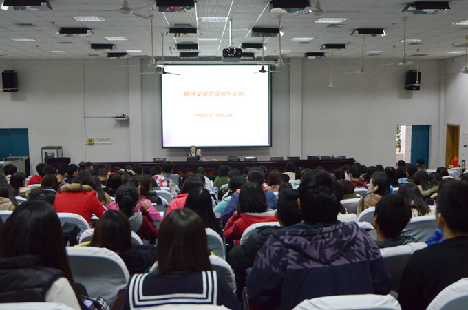 12月4日下午,应教务处邀请,中南大学文学院院长欧阳友权在致远楼学术报告厅作了一场题为"我国网络文学的现状与走向"的人文素质教育讲座。