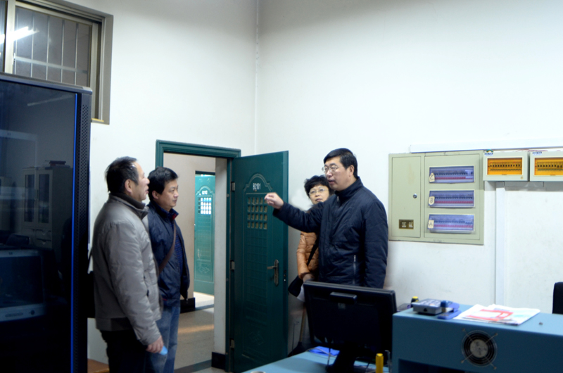 院长韦成龙(右一)检查开学第一天的教学情况