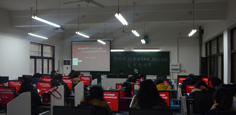 12月28日上午,四川外语学院熊沐清教授和胡安江教授应邀来我校做了两场学术讲座。讲座由公共外语部主任涂靖教授主持。第一场讲座由熊沐清教授主讲,主题为"界面研究与科研创新:以认知诗学为例"。熊教授首先从自身的审稿经验出发,生动讲解了撰写高质量科研论文应注意的相关问题。并结合"界面"的概念,以认知诗学为例,讲解了认知语言学与诗学的结合所形成的新界面对科研创新的作用和意义。此外,熊教授指出,研究者需遵循四大原则:科学性、创新性、诚实性和可持续性。科学性要求研究者必须坚持研究的价值、品格和方法;创新性需坚持"三新":即观点新、材料新、方法新;诚实性要求诚信做学问,不抄袭,不剽窃;可持续性需研究者从研究对象、研究基础、研究动态这三方面考虑研究课题的普及性和独特性。随后,熊教授在科研选题方面给全体教师提供了建设性的建议,鼓励大家做学术要有前瞻性和敢为人先的勇气。