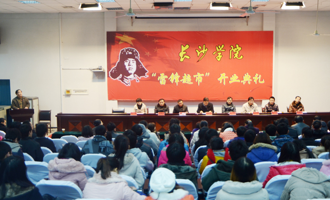 12月28日下午,我校"雷锋超市"开业典礼在致远楼学术报告厅隆重举行。刘世昌副院长,长沙市民政局贵志平副局长、开福区民政局张俭局长和我校学生工作处、团委负责人,各系、基础学院党总支书记参加了本次活动。