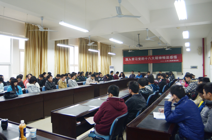 为了响应党中央号召,深入理解十八大精神, 11月20日下午,土木工程系党总支部在理工楼A303开展了深入学习党的十八大会议精神畅谈感悟座谈会。