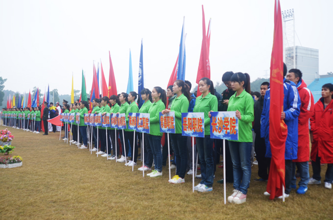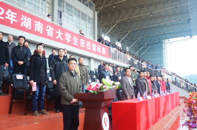 11月17日,天健体育场人潮涌动,2012年湖南省大学生田径锦标赛在这里隆重举行。省教育厅体育卫生与艺术教育处副处长贺照、省学生体育协会秘书长潘洪飚,我校副院长屈林岩、党政办主任周明侠、教务处处长张世英、体育教学部主任曾一兵出席开幕式。一同出席开幕式的还有赛事委员会委员、各参赛学校代表队领队、我校有关职能部门负责人。湖南省学生体育协会副秘书长何伟健主持开幕式。