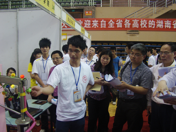 大学生机械创新设计大赛是连续获得教育部和财政部大学生竞赛资助的项目之一。目的在于引导高等学校在教学中注重培养大学生的创新设计意识、综合设计与制造能力及团队协作精神;加强学生动手能力的培养和工程实践的训练,提高学生针对实际需求通过创新思维,进行机械设计和工艺制作等实际工作能力;吸引、鼓励广大学生踊跃参加课外科技活动,为优秀人才脱颖而出创造条件。第五届全国大学生机械创新设计大赛的主题为"幸福生活-今天和明天",内容为"休闲娱乐机械和家庭用机械的设计与制作"。大赛由湖南省教育厅主办,湖南大学承办,共有来自国防科大、湖南大学、中南大学等二十五所高校选送的一百六十余件项目参与角逐。我校共选送了 两个项目参赛,均获得三等奖的好成绩。