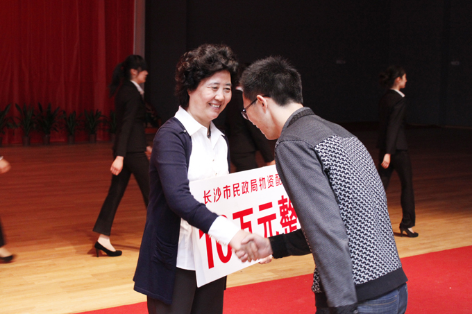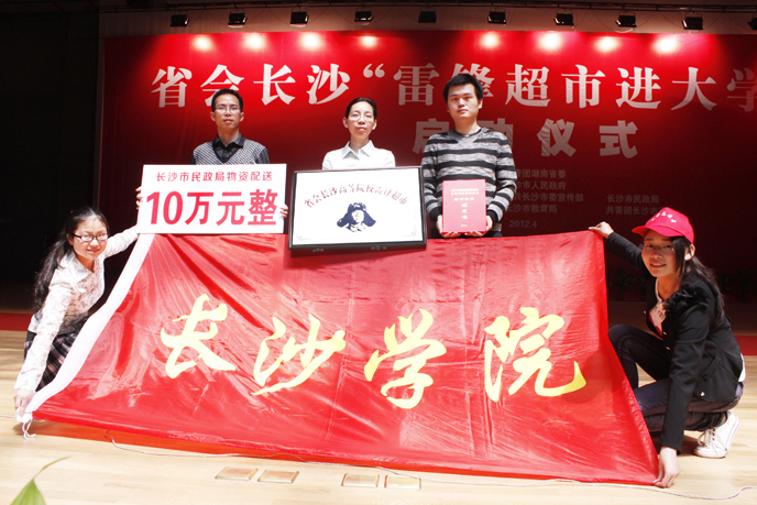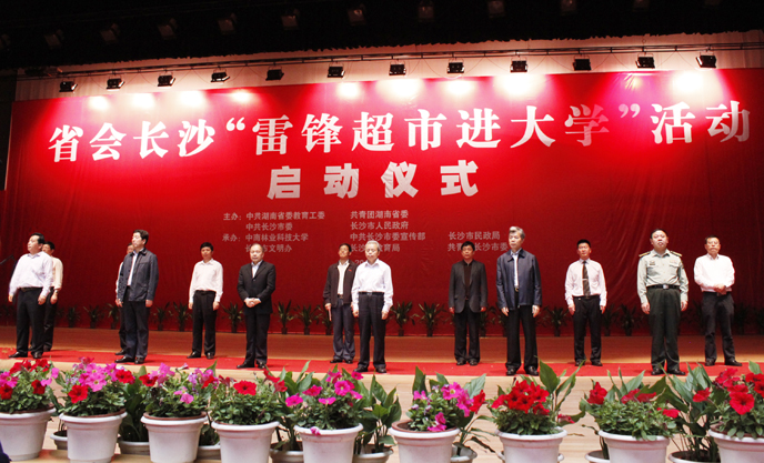 4月28日上午,省会长沙"雷锋超市进大学"启动仪式在中南林业科技大学举行。省委常委、长沙市委书记陈润儿宣布活动启动。我校党委副书记、副院长李云龙出席,学生工作处副处长贺革带领工作人员胡毅、杨桦以及校青年志愿者代表参加了此次活动,接受了"雷锋超市"工作站牌、签订了活动结对共建书、领取了由市民政局提供的十万元活动启动资金,会后现场参观了中南林业科技大学的"雷锋超市"。