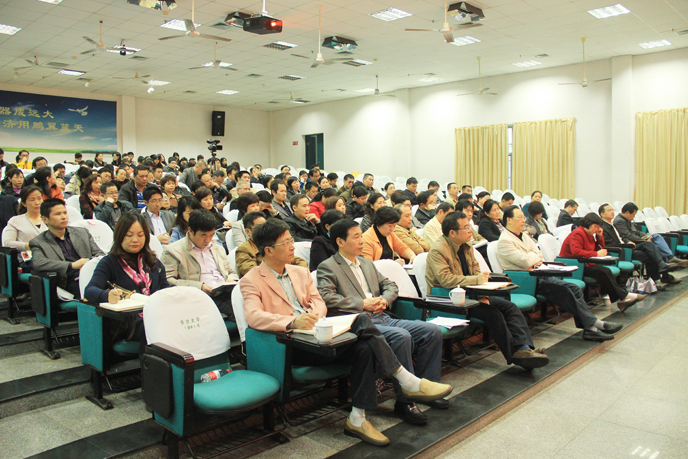 4月20日下午,我校2012年度第一次党委中心组(扩大)理论学习会议在致远楼学术报告厅举行。湖南省人民政府新闻办主任孔和平应邀为我校师生作了题为《高校常见突发事件的应对与处理》的专题报告。校领导黄中瑞、李云龙、钟惠英、屈林岩、郭清泉、雍正海、陈大川,全体中层干部、教工党支部书记和政治辅导员参加了学习。会议由党委副书记、副院长李云龙主持。