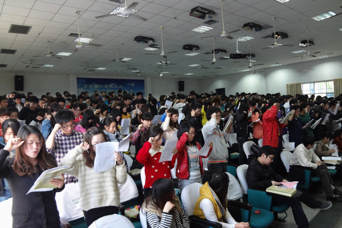 学生工作处处长夏湘远介绍了我校学生资助保障体系的建设情况。他说,国家助学贷款政策是国家实施科教兴国的战略工程,是一项惠及千家万户学子的民心工程,是一项放飞梦想的阳光工程。他希望受助学生理性对待贫困,树立自强自立意识,诚实守信,敢于担当,有所作为。随后,外语系黄二娇同学代表所有获得2011年度助学贷款的同学发言。她通过自身的经历鼓励大家要自强自立,切实践行诚信美德,并带领全体获得助学贷款的同学进行了庄严的宣誓:"我将勤俭务实,奋斗自强,内诚于心,外信于人,言而有信,践行承诺,按期还款,绝不违约!"