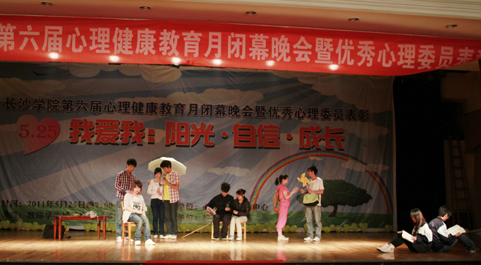 5月25日是全国大学生心理健康日,"525"谐音即为"我爱我",旨在提醒大学生关爱自我、了解自我、接纳自我。5月25日晚,由校心理健康教育中心主办,校、系心理部承办的"第六届心理健康月闭幕晚会暨优秀心理委员表彰大会"在学生活动中心举行。学生工作处、机电工程系、计算机科学与技术系、旅游管理系、法学与公共管理系、中文与新闻传播系、基础学院的相关负责人以及各系心理联络员老师和学生会负责人参加了本次晚会。