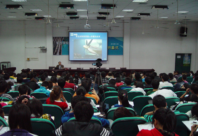为响应湖南省"三湘读书月"活动,弘扬读书文化,营造校园书香生活,大力推进数字化阅读,2010年11月2日下午2点,由校宣传部、图书馆、校团委联合主办,读者协会协办的长沙学院第二届"读书月"活动暨中科院专家科普知识讲座在致远楼学术报告厅举行。党委副书记、副院长李云龙,副院长郭清泉,校团委书记薛平平,图书馆馆长尹锋,党委宣传部副部长余文龙等有关部门的负责人、读者协会会长邓丹及各系的学生代表出席了本次开幕式。