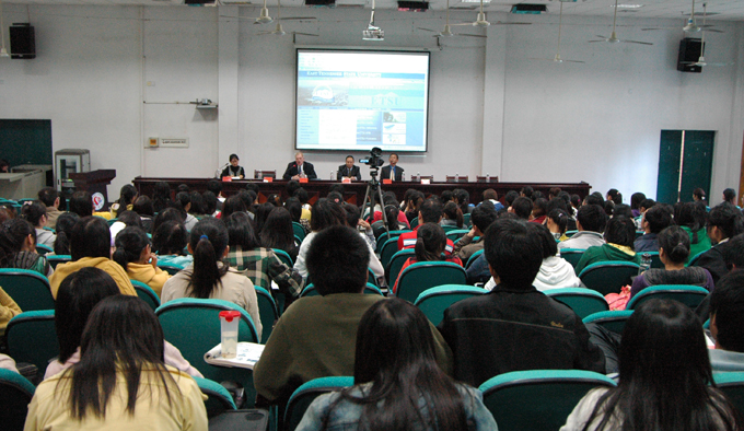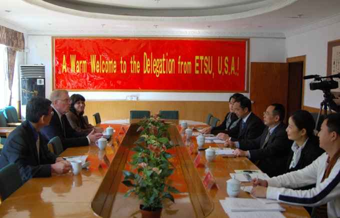 双方着重讨论了如何具体实施两校的合作项目问题,并就交换学生、研究生合作等项目的实施签订了初步的合作协议。下午,来宾在致远楼学术报告厅给我校学生做了精彩的演讲。刘耘院长主持了演讲会。东田纳西州立大学副校长Bert. C.Bach、国际交流主任Maria Costa、国际关系系系主任陈卫星教授,分别就东田纳西州立大学学校环境、院系概况以及国际项目等进行了介绍并现场回答了同学们的提问。