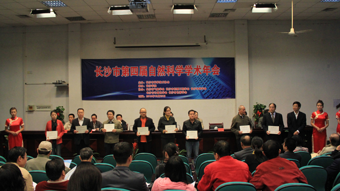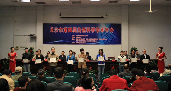 我校党委书记黄中瑞致欢迎辞。他代表学校对来宾表示热烈的欢迎,向科技工作者致以崇高的敬意并简要介绍了我校的基本情况。廖洪元致开幕辞,并就自然科学年会及其意义进行了简要阐释。长沙市副市长何寄华发表讲话。他代表长沙市人民政府对两位院士的莅临指导表示感谢,向获奖论文的作者表示祝贺。同时,结合往届自然科学学术年会,他谈了三点建议:一是学术活动的开展要作为凝聚发展的重要力量,激发创新动力、挖掘创新潜力,为凝聚科技界、学术界、教育界资源搭建平台;二是各级、各部门支持学术活动的开展,为其开展提供必要的保障;三是将学术成果作为评价学术活动的重要指标。刘岳群在介绍学术年会后,提出三点希望,让学术年会成为科技工作者进行科研的平台;成为全市科学技术创新的平台;成为促进全市和谐发展的动力。刘谷收宣读了《长沙市第四届自然科学学术年会优秀论文表彰决定》,出席领导对5篇一等奖优秀论文、21篇二等奖优秀论文和40篇三等奖优秀论文的作者进行了颁奖。