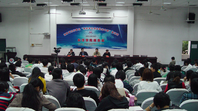 会上,胡跃福所长以《起步精彩,步步精彩》为题,从人才学的角度谈论了培养创业型人才的重大意义,讲述了"走好职场第一步"的实质和策略、方法。他指出:一生的精彩在于起步的精彩,当代大学生面临的是一个机遇与挑战并存的时代,应当把握机遇,勇敢迎接挑战,提前做好就业准备,实现人生由学习知识到接受社会分工、由消费财富到创造财富、由父母供养到自我供养的三大转变。接着,我校优秀创业校友周延瑞与大家分享了自己创业成功的经验,表达了对母校的感恩之情,以及对学弟学妹的殷切期望。他说:"创业的路既艰辛又快乐,因为有了社会的支持,母校的关怀,我才能在创业中实现自我价值,长沙学院是我的娘家,更是我的后盾,我衷心祝愿所有热爱创业的学弟学妹们能够实现自己的梦想!"