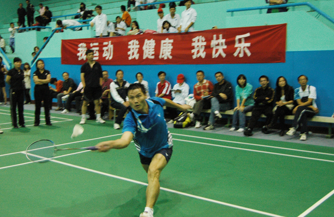 赛场上,一方发球,另一方反击;一方吊网前球,另一方反手击球。双方你来我往,挥汗如雨,斗争激烈,比分你追我赶,赛场硝烟四起。这是10月16日在长沙学院开幕的"2010年湖南省普通高等学校'校长杯'羽毛球比赛"的精彩一瞥。