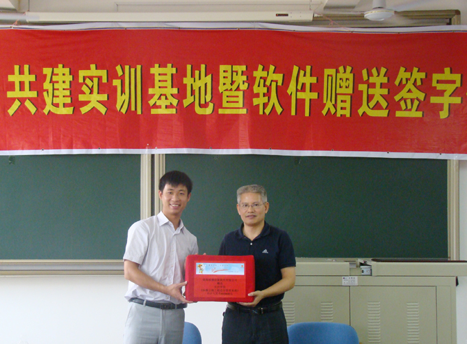 签字仪式上,珠海纵横创新有限软件公司、长沙智多星信息技术有限公司,向我校土木工程系捐赠了价值829400人民币的"纵横公路工程造价管理系统",谢立辉主任和张东晓先生签署了捐赠的合同。然后校企双方一起为共建的实训基地揭牌。据张东晓先生介绍,"纵横公路工程造价管理系统"已通过交通部的测评,成为社会主流软件之一。网络版用户突破万人,遍及全国各省。