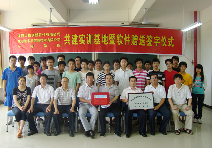 7月8日,珠海纵横创新有限软件公司,长沙智多星信息技术有限公司,与我校共建实训基地暨软件赠送签字仪式在理工楼A303隆重举行。党委副书记、副院长李云龙,副院长郭清泉,土木工程系主任谢立辉,副主任夏力农,党总支书记张跃佳,珠海纵横创新有限公司华中大区经理张东晓,销售经理万志平,长沙智多星信息技术有限公司总经理袁明提出席了仪式及40余名学生代表。
