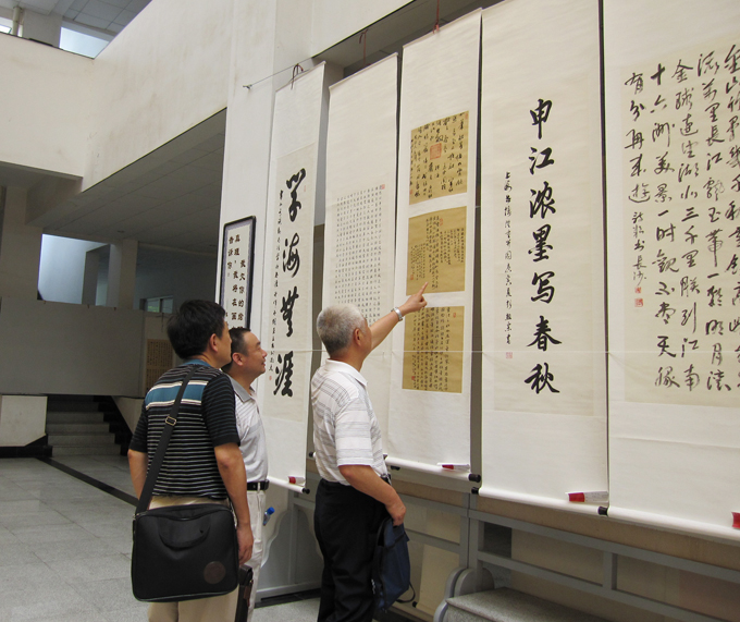 书法不只是写字,也不只是艺术,更是一种精神。7月3日上午,由湖南省教育厅艺术教育委员会、湖南省教学会书法教育专业委员会和我校联合主办的"湖南省高校第七届师生书法联展"在丹青楼开展。党委副书记、副院长李云龙、高校书协主席王元建、副主席刘亚东、秘书长罗虹胜、著名书协艺术家蔡德林、中南大学艺术系院长王希俊以及湖南第一师范学院苏美华教授出席此次联展。