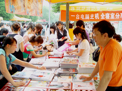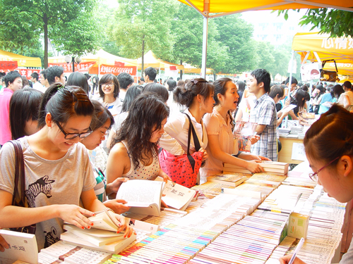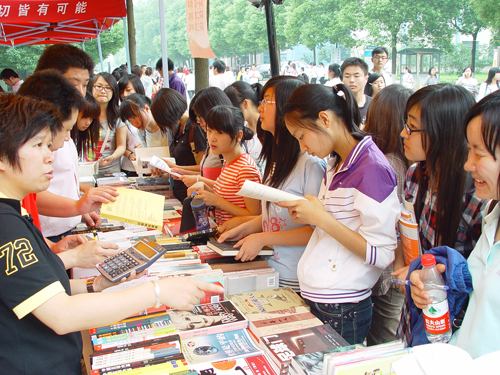 本次书展共有展位22个(包括BMH创业团队),人民出版社、新华书社、岳麓书社等十几个出版机构参与了本次活动。凡购书满10元者都真诚奉上他们用心设计的具有浓厚古典韵味的书签一张,并可凭书签参加抽奖活动。活动历时两天,人流量超过5000人次,古典经典,动漫、英语辅导资料等深受同学们的欢迎。此次益书会,销售总额将近25000元,较去年增加了7成。其中销售额最高的是和顺书社。