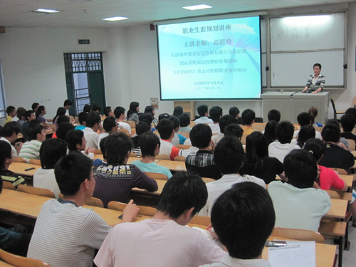 6月2日晚7点,长沙清玲教育信息咨询有限公司总经理,国内多所高校职业规划师、《大学时代》杂志社特聘职业指导顾问高清玲在涵虚楼B多3给计算机与科学技术系09级学子做了一场题为"我的大学我做主"的讲座。计算机与科学技术系党总支书记赵小燕、辅导员雷震云、宋颖老师参加了此次讲座。