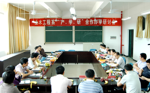 5月12日上午,土木工程系在理工楼A区303举行 "产学研"研讨会,邀请毕业多年的校友回校共同探讨人才培养之策。正院级督导钟惠英、教务处副处长李国锋、校友会秘书长黄曼贻、土木工程系主任谢立辉、副主任夏力农、党总支书记张跃佳等出席了研讨会,罗劲军、朱长安、刘炳坤、肖国强等10位从土木工程系毕业的校友回校参加了研讨会。