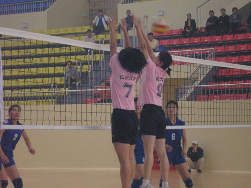 2009年10月27日至11月4日,我校女子排球队在领队曾一兵,教练员周英华、杨芳良的带领下,参加由湖南省教育厅主办,常德市教育局承办的2009年湖南省大中学生排球赛。本次比赛有来自省内10多所高校的15支男、女队伍参赛。我校运动员团结奋进,努力拼搏,赛出水平,赛出风格,荣获第三名。我校队员汤清、梁慧玲两位同学被授予"优秀运动员"光荣称号。