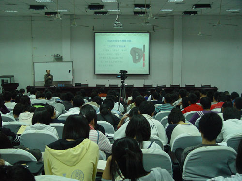 讲座首次采用两人合作的方式。李云龙给师生介绍了新校训的诞生过程和学习践行新校训的"十二字心法";陈蒲清从文化的角度阐释了新校训的意义。