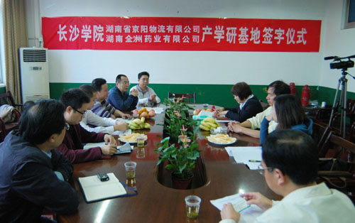 10月27日上午,院长刘耘在办公楼三会议室与湖南省京阳物流有限公司和湖南省全州药业有限公司的负责人签订了产学研基地合作协议书,标志着我校产学研基地又添两个"新成员"。院长刘耘、副院长屈林岩、工商管理系主任邹安全参加了签字仪式。