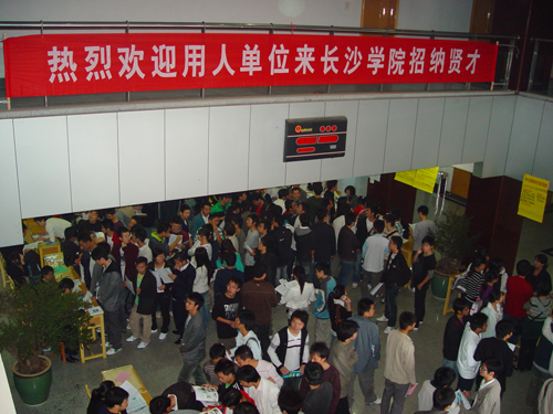 由长沙市经济技术开发区和我校招生与就业指导处联合举办的专场招聘会共吸引了落户经济技术开发区的22家用人单位和500多位应届毕业生参加。本次招聘会共提供了830多个岗位,岗位主要覆盖机械制造、模具、营销、计算机、文秘等专业。远大集团和三一重工作为长沙市工业产业的龙头老大,受到毕业生的追捧,远大集团招聘摊位前应聘的毕业生排起了长龙。