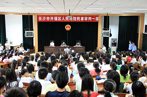 此次审判是地方法院第一次在我校公开审判,也是我校开福区人民法院教学法庭的第一次教学实践活动。湖南日报、长沙晚报、政法频道、潇湘晨报等各大媒体均对此做了报道。教务处处长张世英、副处长李国峰、法管系主任周湘莲、法管系党总支书记刘利元、团总支书记易方、张胜先教授、孙喜峰教授以及法学专业其他老师旁听了此次审判。