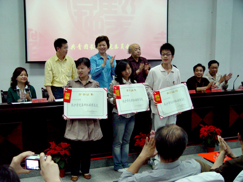 首先,团委书记刘昊对过去一年的工作进行了总结。随后,副院长宋达宣读了获奖名单。我校信息与计算机科学系等三个团总支获"五四红旗团总支标兵"荣誉称号,土木工程系等三个团总支获"五四红旗团总支"荣誉称号,机电工程系2005级机本二班团支部等46个团支部荣获"五四红旗团支部"称号,唐思湘等204位同学获"优秀团干部"荣誉称号,曾星翔等376位同学获"优秀团员"荣誉称号,计算机科学与技术系青年志愿者分会荣获"优秀青年志愿者服务集体"称号,汤纶等21位同学获"优秀青年志愿者"荣誉称号。会上,3位获奖学生代表分别发言。她们与大家分享了自己在工作、学习中的心得体会。