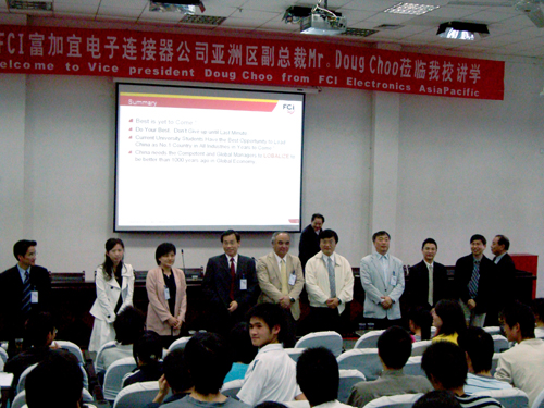 4月24日下午,FCI 富加宜电子连接器公司亚洲区副总裁Mr.Doug Choo在我校科技楼学术报告厅作了一场别开生面的学术讲座。