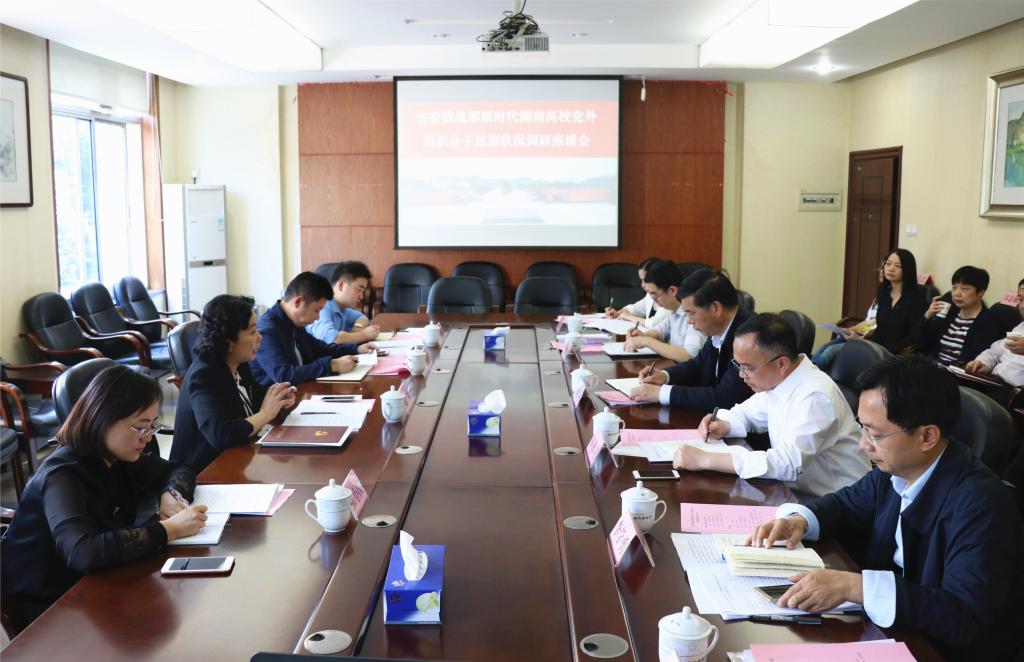 4月19日下午,省委统战部副部长胡东风一行4人来我校就“新时代湖南高校党外知识分子思想状况” 进行专题调研。校党委书记韦成龙、党委副书记屈林岩,组织统战部、宣传部、人事处负责人以及学校党外知识分子代表参加调研座谈会。韦成龙主持会议。