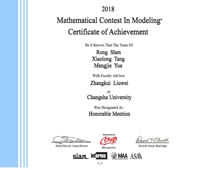 4月20日,2018年美国大学生数学建模竞赛的成绩正式揭晓,我校荣获二等奖2项。