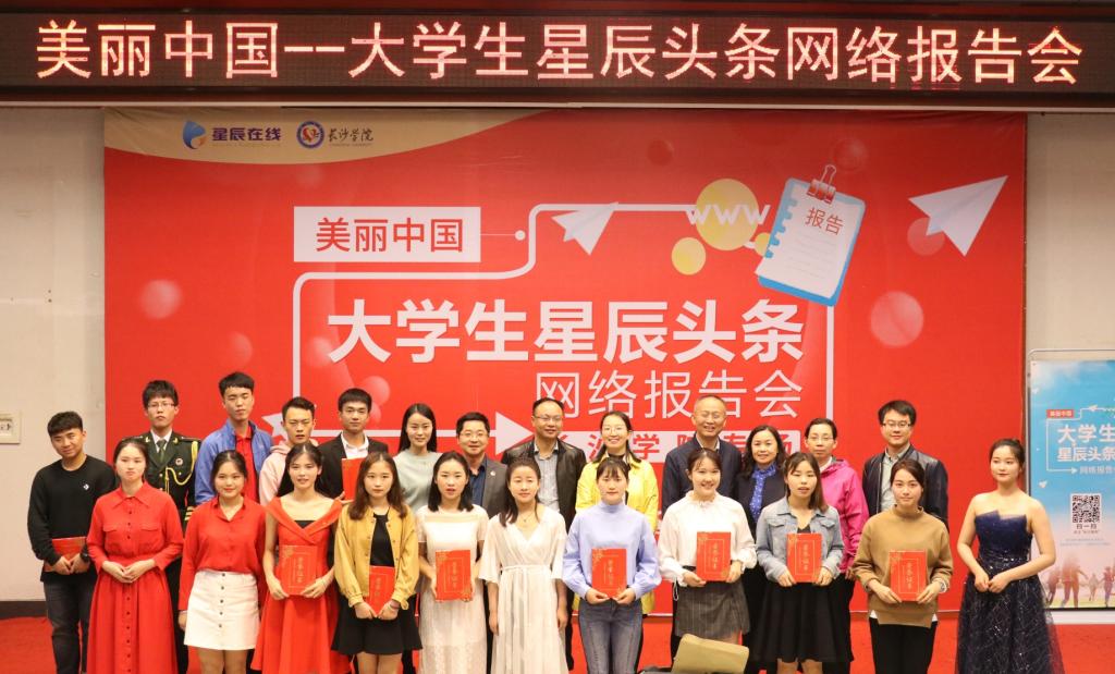 谷建春和涂坚毅分别致辞。谷建春希望以此活动为契机,在学校掀起学习、宣传党的十九大精神的热潮并期待青年学子展示长大风采,绽放绚丽光芒。涂坚毅表示,希望长沙市“第一新媒体”星辰在线与长沙市“最高学府”长沙学院联袂发出最强的“美丽中国”好声音。