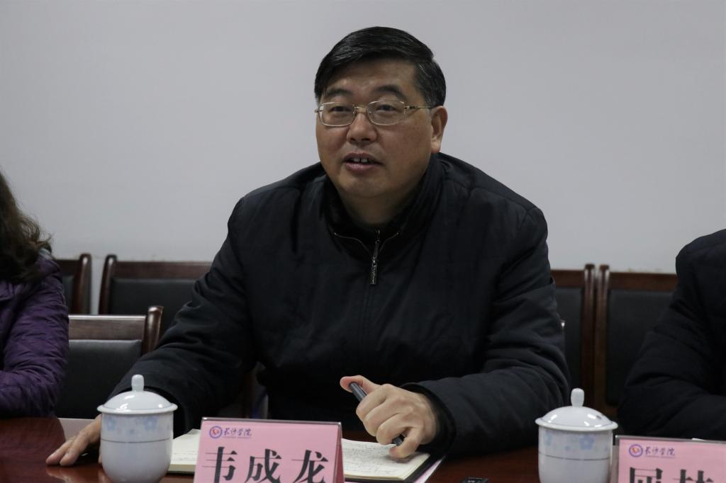 史锋指出,今年即将开评第一届湖南省文明校园。长沙学院学风正、环境美、师资队伍强、学生认识高,在文明校园创建工作中有良好的平台和起点,希望学校能锐意创新、不断进取,推动思想道德建设,加强校园文化建设,将弘扬社会主义核心价值观融入教书育人的点滴中,把长沙学院建设成全省文明校园创建典范。