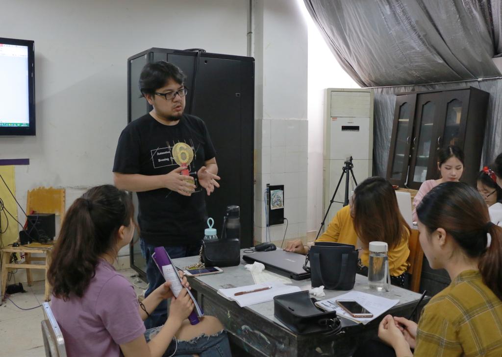 他将这样的创作理念言传身教给了学生,也将自己对艺术的执着一点一滴地传承了下去。在去年暑假与学生共同准备大学生广告设计大赛期间,他因膝盖得了严重滑膜炎而行动不便,但他毅然选择了推迟手术,回到展厅与学生继续共同进退。他认为:“动画创作的关键是要将创意设计落到实处,只有不断的实践与摸索,学生才能找到窍门。”来自艺术学院15级动画专业学生吴昱衡便是他指导的学生之一,“赵老师平常与我们的交流就像朋友一样,上课时会和我们讲述许多对于动画的理念。指导我们比赛时,他常通过分享一些人物趣事给我们带来灵感。他对生活细节的认真以及对艺术的热爱影响着我们,使我们更加坚定自己的目标。”吴昱衡说。