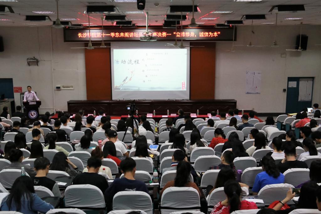 东来阁讲坛是长沙学院校园文化建设品牌活动之一,以“7分讲+3分演”的方式进行。自2008年6月至今,已举办了十一届,评书高达5万余本,影响长大学子10万余人,彰显出新当代青年学子的朝气与魅力,展现了我校独有的校园文化和深刻影响力。