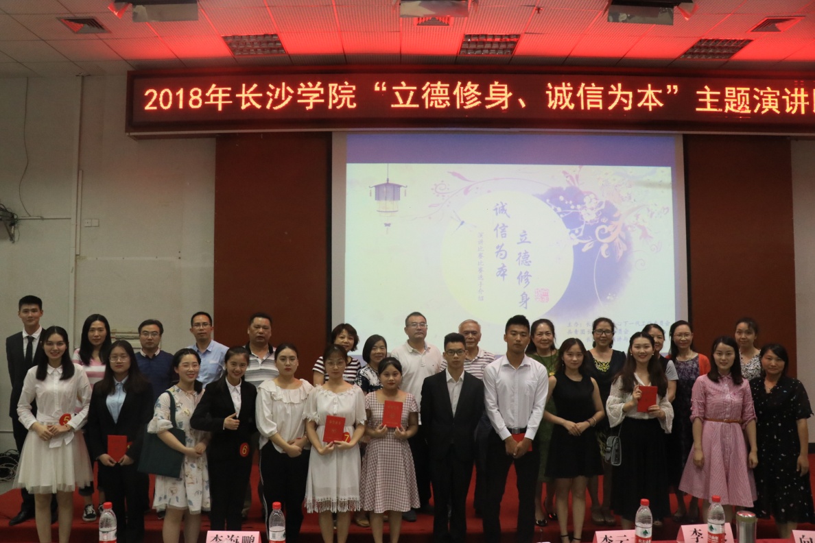 为响应习近平总书记在北京大学师生座谈会上对广大青年提出的要“爱国、励志、求真、力行”的号召,6月11日晚,由校关工委和校团委联合主办,校演讲与口才励志协会承办的“立德修身 诚信为本”主题演讲比赛在学术报告厅落幕。在初赛选拔中脱颖而出的11名选手围绕“立德修身 诚信为本”的主题交流思想、分享感悟,展现了当代大学生的品格与担当。原长沙大学校长、现校关工委常务副主任李峻,长沙学院原党委副书记、副校长、现校关工委副主任李云龙出席活动。