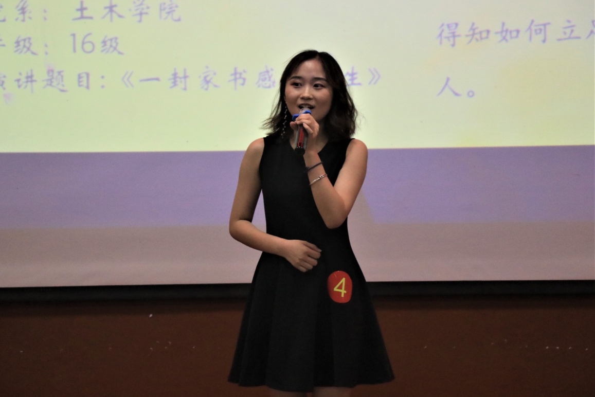 参赛选手戚钰颖以《一封家书感悟平生》为题进行演讲