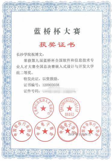 日前,第九届“蓝桥杯”全国软件和信息技术专业人才大赛全国总决赛在北京落幕,我校电子信息与电气工程学院学生祝博文代表学校参赛并荣获嵌入式设计与开发组二等奖。