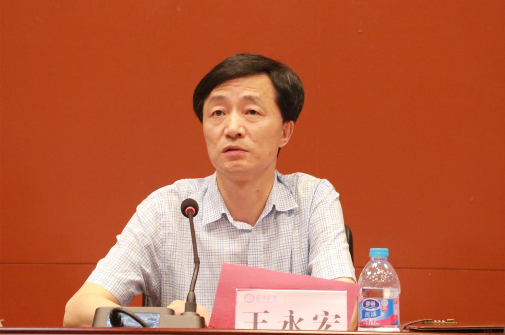 副校长王永宏讲话,他表示,暑期维修改造项目多、涉及面广、参与人员多、时间紧,各职能部门、施工单位、监理单位务必做到四个“确保”:一是要确保涉及教育教学的项目必须按时完成;二是要确保各施工项目质量;三是要确保施工人员及工程竣工后使用人员的安全;四是要确保守规矩,各职能部门相关负责人、施工单位和监理单位相关人员都应遵章办事、规范施工。