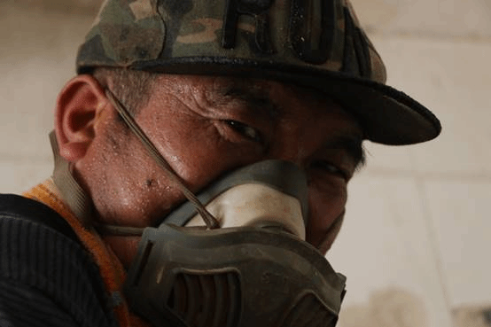 挑水泥的工人名叫肖先武,他每天的工作是把水泥运到每个楼层,最高爬到过六楼。一趟又一趟重复着这项工作,由于挑水泥上台阶要保持平衡,双手得扶着两只桶,不方便擦汗,他只好在脖子上挂一条毛巾来吸汗。